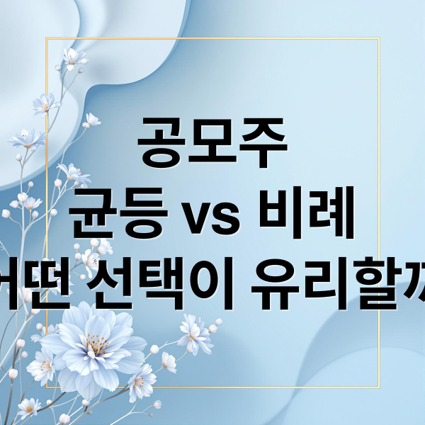 공모주 청약 시 마주하게 되는 ‘균등배정’과 ‘비례배정’은 투자자가 실제로 얼마나 많은 주식을 받을 수 있는지를 결정하는 중요한 기준이 됩니다. 이 두 가지 방식은 각각 다른 원리로 작동하며, 투자자의 자금 상황과 투자 성향에 따라 유리한 선택이 달라질 수 있습니다.